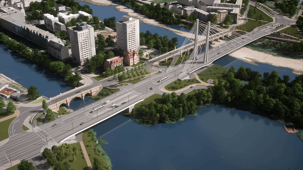 Am linken oberen Bildrand zu sehen: das Elbzentrum - Copyright: Bauwerksentwürfe Leonhardt, Andrä und Partner sowie AI.STUDIO GmbH Visualisierungen