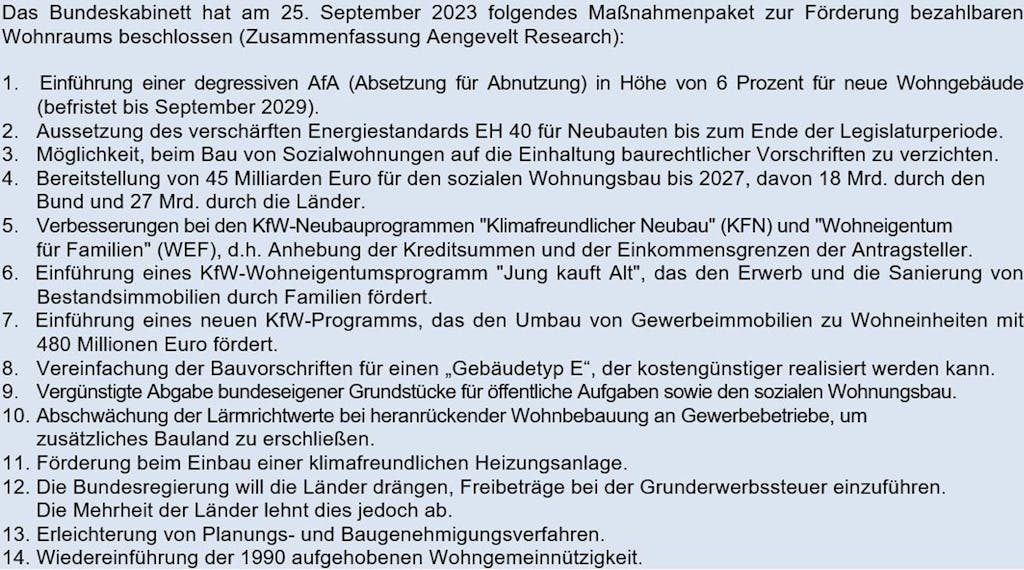 Aengevelt analysiert beschlossene Maßnahmen der Bundesregierung.