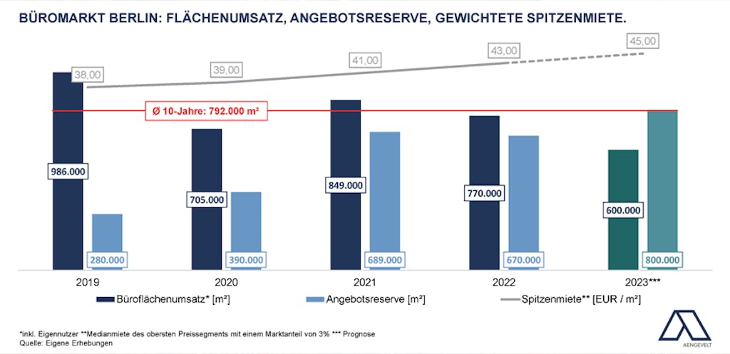 •Bis Ende 2023 prognostiziert Aengevelt Research einen weiteren Anstieg der Angebotsreserve auf rd. 800.000 m².