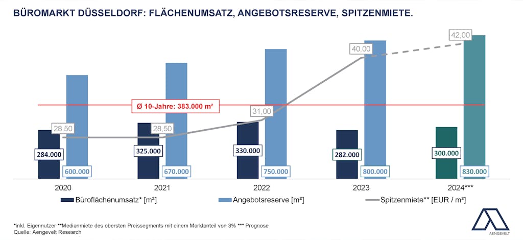 • Für 2024 prognostiziert Aengevelt Research einen weiteren moderaten Anstieg der Angebotsreserve auf etwa 830.000 m².