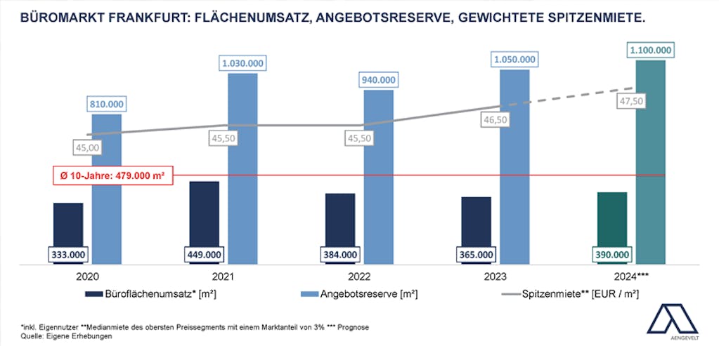 • Bis zum Ende des Jahres 2024 prognostiziert Aengevelt Research einen weiteren moderaten Anstieg der Angebotsreserve auf rd. 1.100.000 m². Allerdings ist im Falle einer möglichen Marktdynamisierung in der zweiten Jahreshälfte durchaus auch eine Stabilisierung bzw. sogar ein leichter Rückgang möglich.
