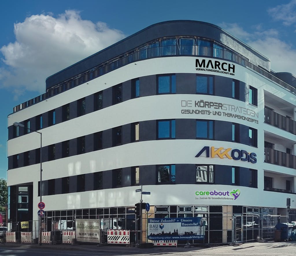- Die Care About GmbH & Co. KG mietet rd. 220 m² im Erdgeschoss zur Eröffnung eines Gesundheitszentrums, das sich insbesondere den Bereichen “Mitarbeitergesundheit“ und “Familiengesundheit“ widmet. Zu den Dienstleistungen zählen hier u.a. Ernährungsberatungen, Führungskräfteseminare, mobile, innovative Gesundheits-Check-ups für Mitarbeiter mit einem weiterführenden effektiven Gesundheitsprogramm. Außerdem werden für Familien in den hochmodernen Kursräumen u.a. von PEKiP, Babymassage, Kinderyoga, Rückbildungskurse und Schwangerschaftsyoga angeboten.