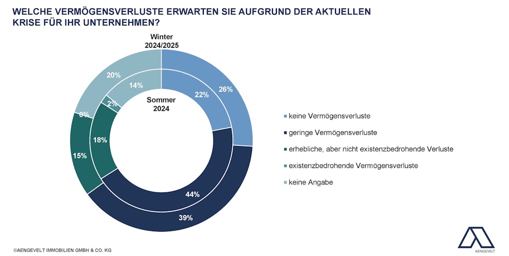 Nach Befragungsstart im Winter 2022/2023 wurde aktuell zum vierten Mal danach gefragt, welche Vermögensverluste die Befragungsteilnehmer für ihr Unternehmen erwarten. Ergebnis der Winterbefragung 2024/2025: