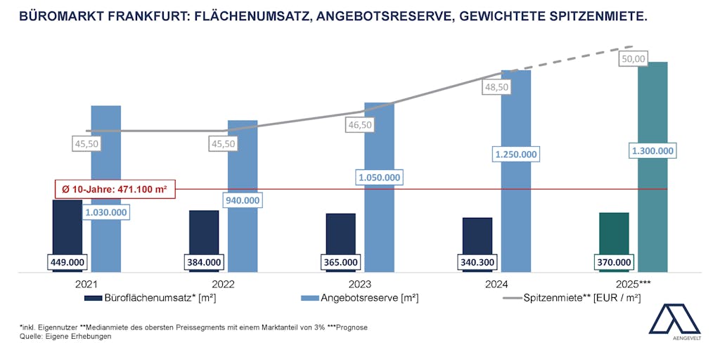 Aengevelt analysiert moderates Umsatzgeschehen am Büromarkt Frankfurt.