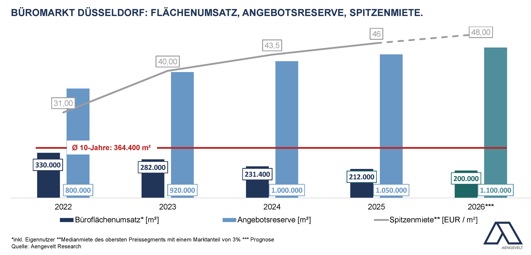 - Für 2026 prognostiziert Aengevelt Research einen weiteren Anstieg der Spitzenmiete auf rd. EUR 48,-/m². Dazu Christoph Mooren: