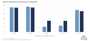 Der Mai markiert im deutschen Gastgewerbe den ersten Monat der Hauptsaison und bietet sich entsprechend für Jahresvergleiche an. Dabei zeigen Auswertungen der Zahlen des Statistischen Bundesamtes durch Aengevelt, dass das Gastgewerbe die Corona-Krise im Mai 2022 nahezu überwunden hat. So erreichten nach zweijähriger Durststrecke mit massiven Einbrüchen die realen Umsätze in der Gastronomie wieder 85 % des Vor-Corona-Niveaus, im Beherbergungsgewerbe sind es sogar 87 %.
