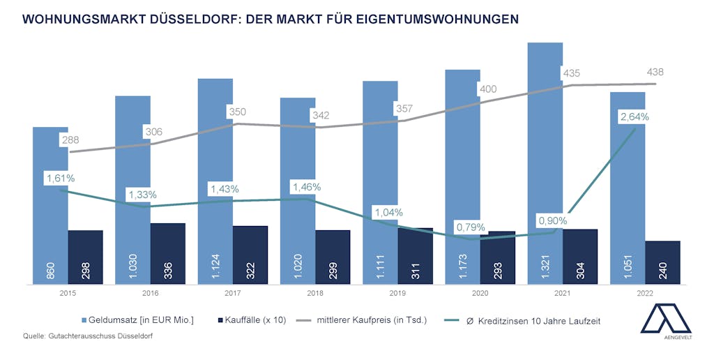Aengevelt analysiert Umsatzrückgang am Düsseldorfer Markt für Privatimmobilien.