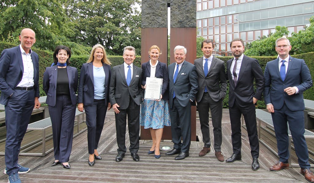 Die Auszeichnung nahmen Dr. Lutz Aengevelt, Dr. Wulff Aengevelt, Mark Aengevelt und Max Aengevelt gemeinsam mit den langjährigen Geschäftsleitungsmitgliedern Susanne Ollmann, Personalchefin und Wertebeauftragte des Unternehmens, sowie Volker Kartnig, Leiter Rechnungswesen und Datenschutzbeauftragter, entgegen.