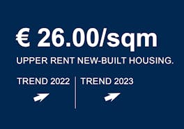 Top rents for new builds, mostly in particularly exclusive locations or properties, have risen by around 23.8% in the last five years to currently EUR 26/sqm. The minimum rent achieved is around EUR 10. 60/sqm.