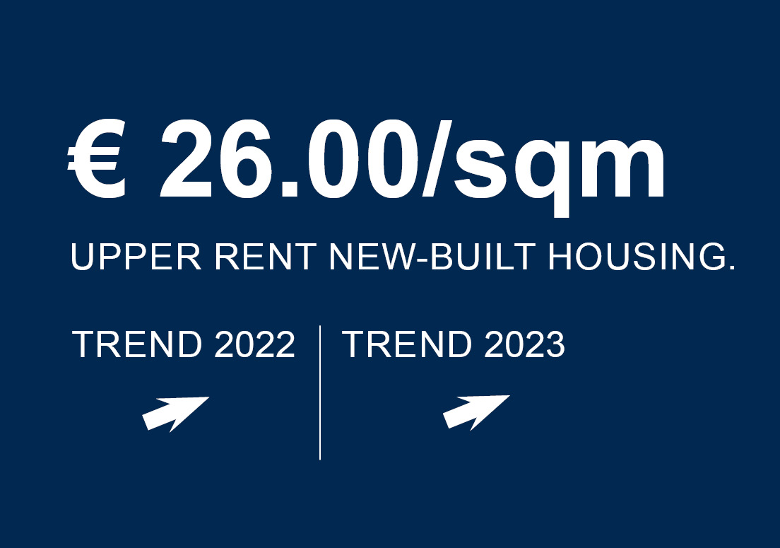 Top rents for new builds, mostly in particularly exclusive locations or properties, have risen by around 23.8% in the last five years to currently EUR 26/sqm. The minimum rent achieved is around EUR 10. 60/sqm.