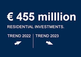 For all new residential construction (residential and non-residential), only around 1,512 (2021: 2,875) building permits were issued in the reporting year. Compared with the long-term ten-year average (2012 - 2021: 2,799 units), this represents a marked decline of 46.0%.