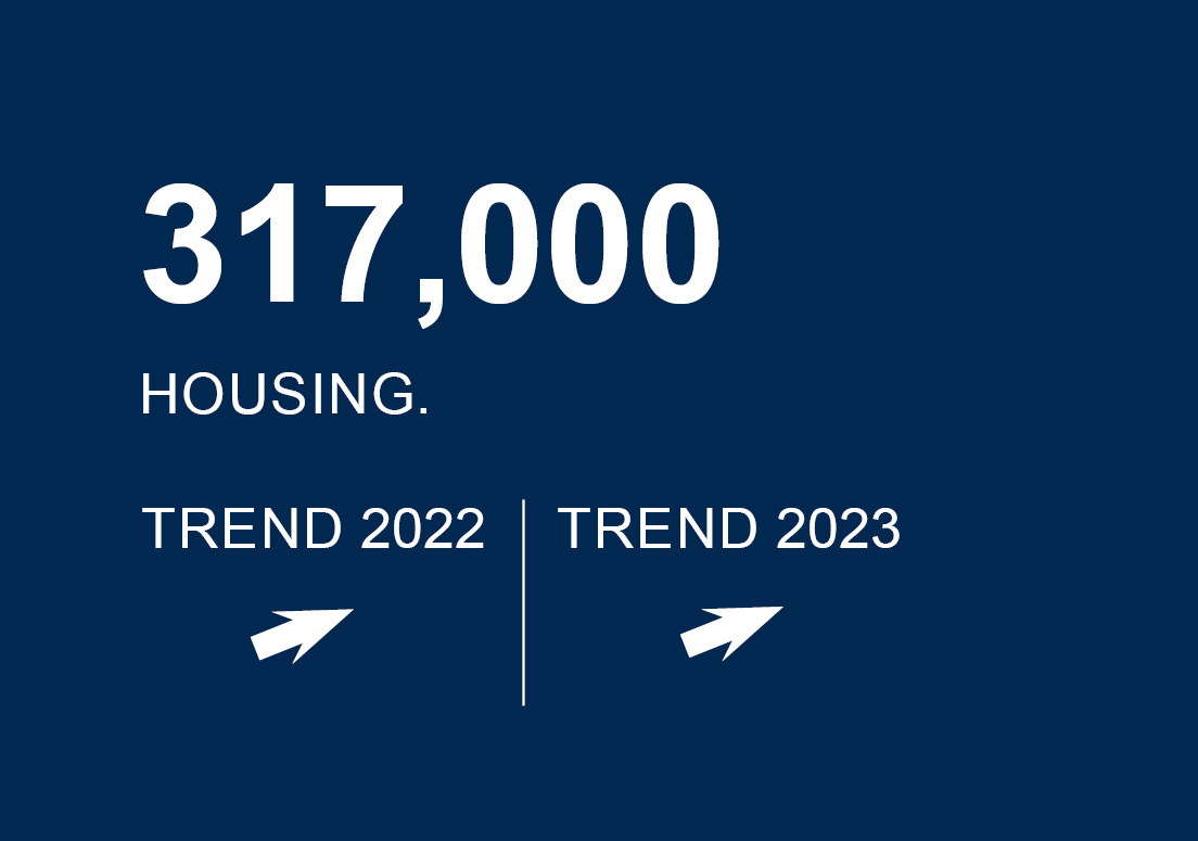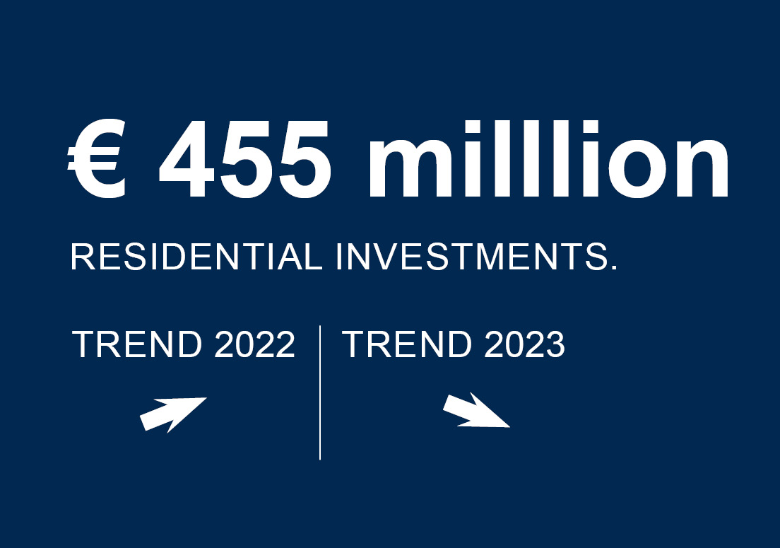 For all new residential construction (residential and non-residential), only around 1,512 (2021: 2,875) building permits were issued in the reporting year. Compared with the long-term ten-year average (2012 - 2021: 2,799 units), this represents a marked decline of 46.0%.