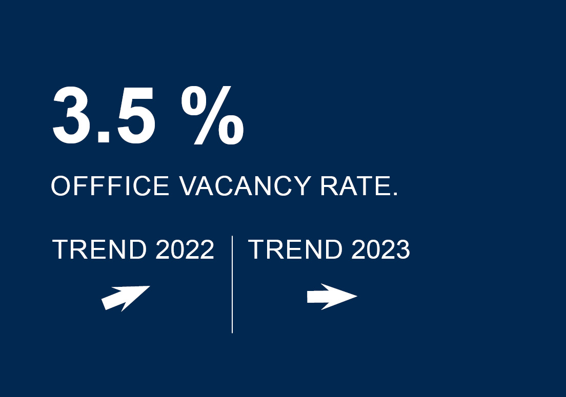 The vacancy rate remained almost constant in the reporting year and only increased slightly. At the end of 2022, the vacancy rate will be around 90,000 m² or 3.5% of the portfolio of around 2.6 million m².
