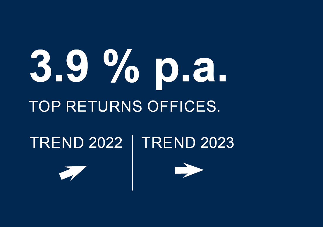 In the top segment of the office space market, top rents (median of the 3-5% most expensive rental space) continued to rise. At EUR 18.50/m², the top rent is still well above the decade average of EUR 13.30/m².