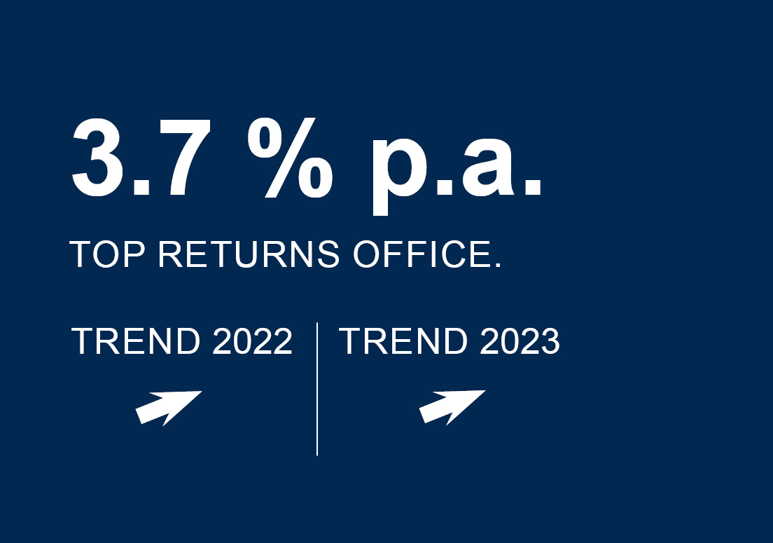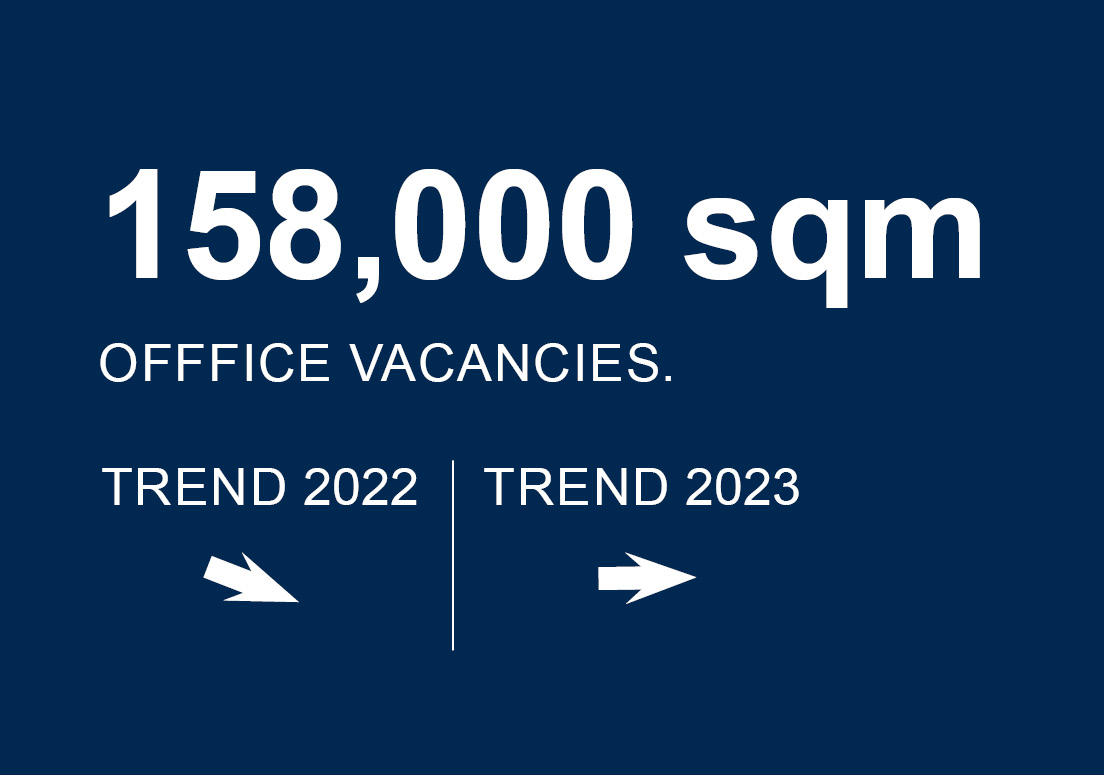 Thanks to continuous absorption of space in the face of insufficient supply, the vacancy rate has fallen again from a nominal 170,000 m² at the end of 2021 (4.4%) to just 158,000 m² (4.1%) at the end of 2022.