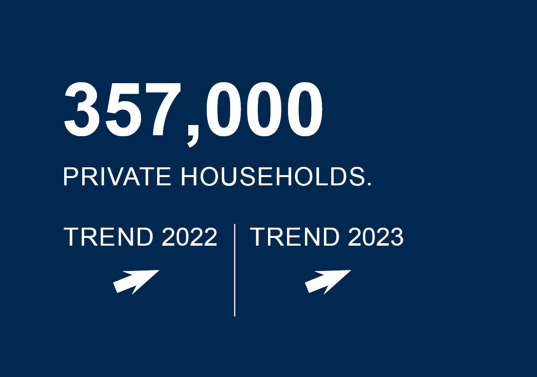 The median property price for multi-family houses was now EUR 2.05 million, down 22.5% on the previous year. For detached and semi-detached houses, the average price was EUR 467,000, up 9.1% on the previous year (2021: EUR 428,000). Residential and part-ownership properties rose by 13.3% within the year, reaching a median value of EUR 257,000 per sale.
