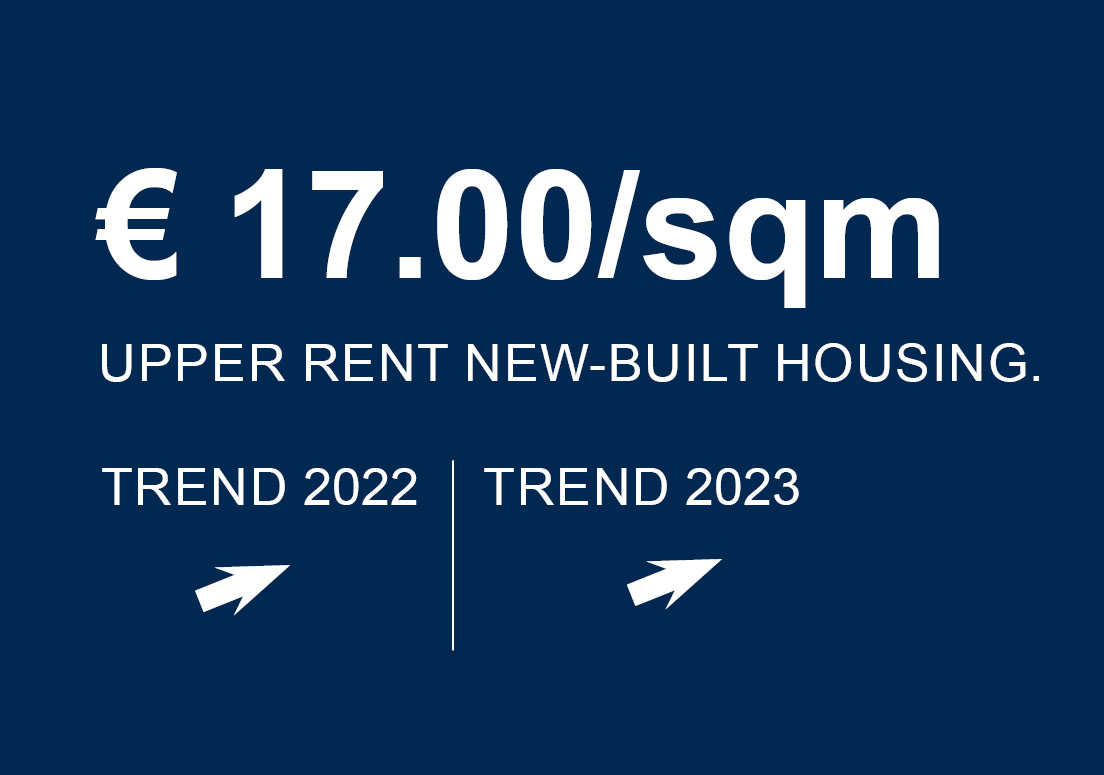 The dynamic population growth of the recent past and the associated increase in the number of households have contributed to an increase in land prices, rents and purchase prices as a result of the insufficient supply of housing. The average asking rents for existing apartments in the city as a whole are around EUR 8.00/m², while rents in the new-build segment average EUR 11.90/m². According to analyses by Aengevelt Research, this trend will continue in the coming years.