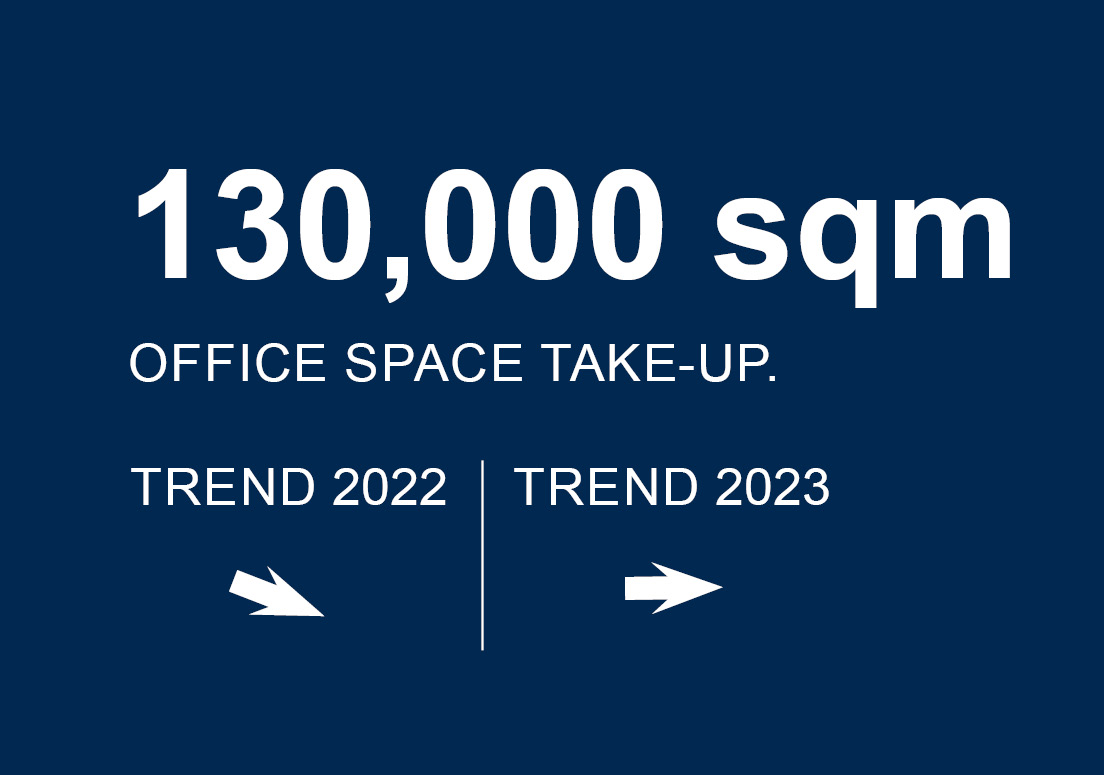 After the office market regained its former strength in 2021 following a slump in 2020 during the Corona pandemic, new challenges awaited in 2022: War in Ukraine, energy crisis, shortage of resources, interest rate and price increases jeopardized sales. With office take-up of around 130,000 m² in 2022, clear trends of increasing momentum at pre-Corona levels could be observed in the Leipzig office market. To this end, the most recent ten-year average was also significantly exceeded with an increase of 11.5% (Ø 2012 - 2021: 116,600 m²).