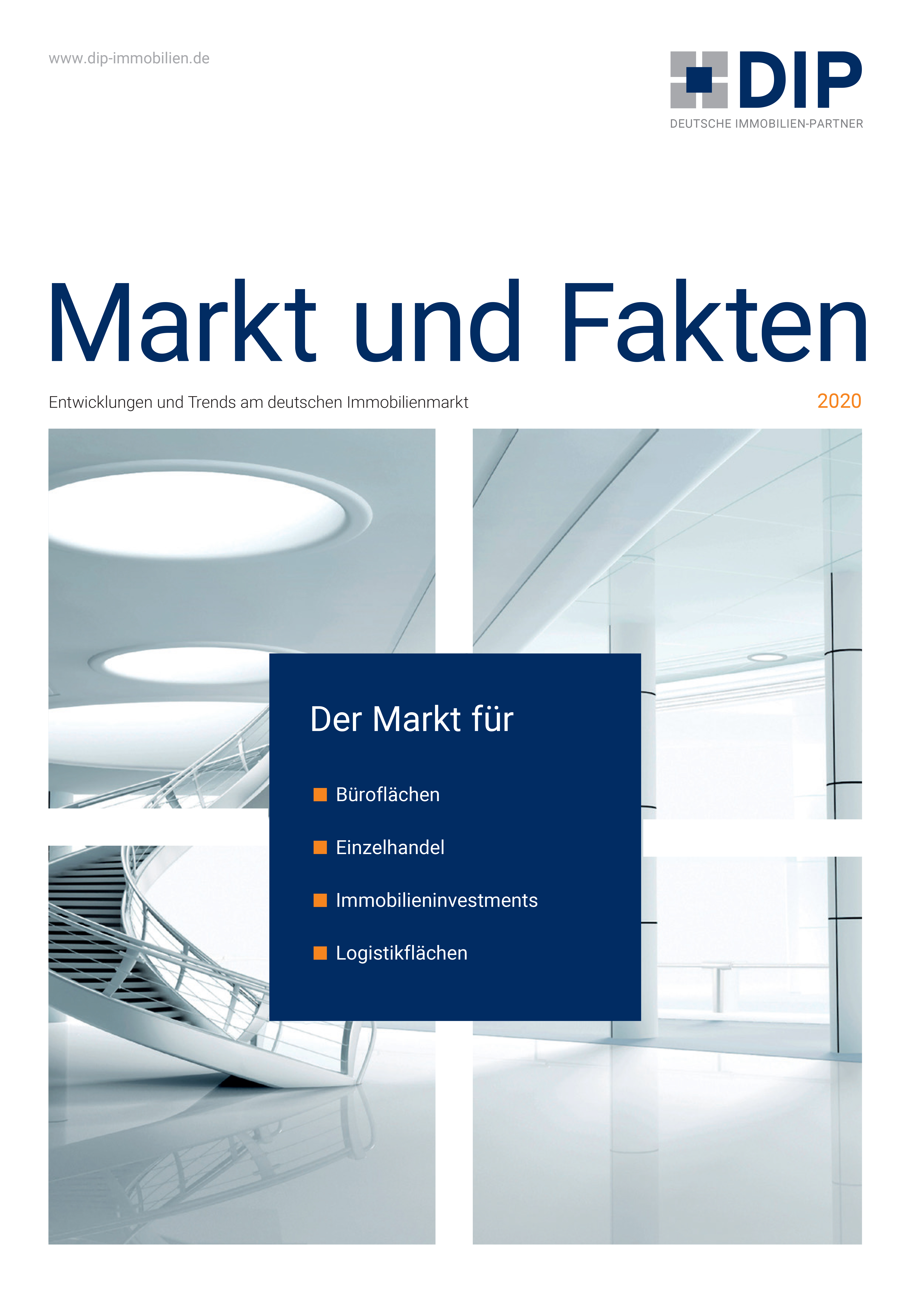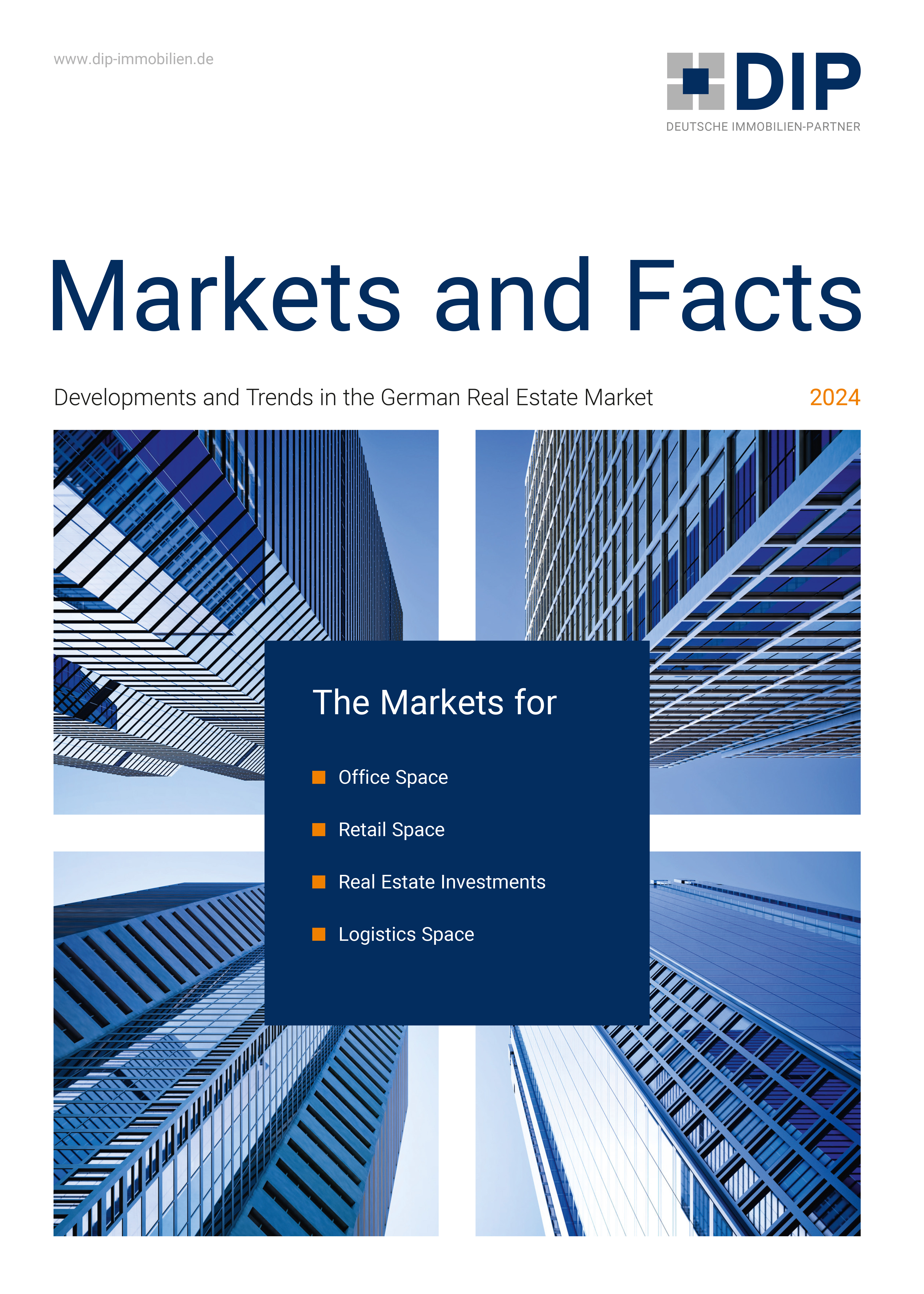 Together with our partners in the DIP network, we compile the “Market and Facts” report once a year, outlining the main developments and trends on the real estate market and providing a detailed presentation of the most important German real estate markets for office space, retail, investments and logistics.