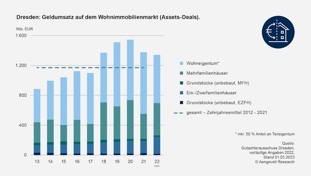 Dresden: Geldumsatz auf dem Wohnimmobilienmarkt (Assets-Deals).