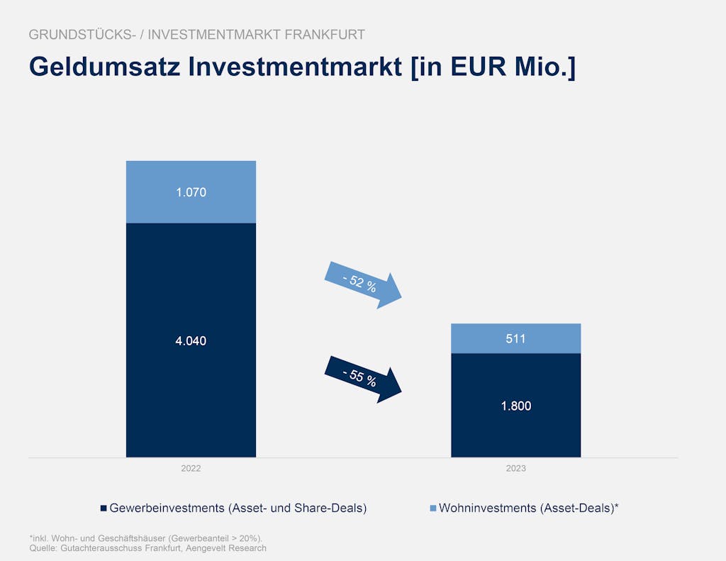 - Gewerbeinvestments mit 55 % Rückgang und somit 72 % unter Zehnjahresmittel (Ø EUR 6,4 Mrd. p.a.).