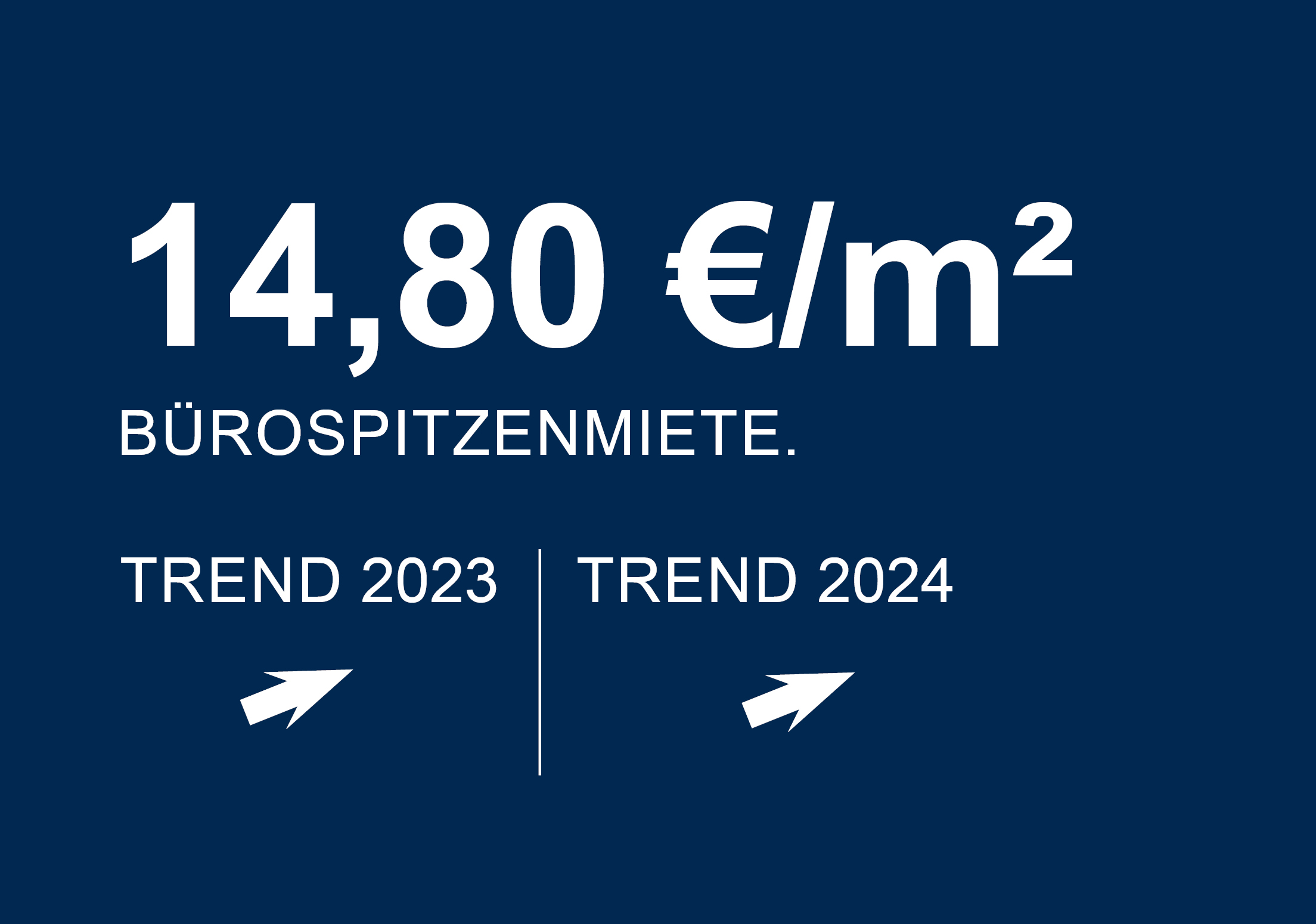- Deutlicher Anstieg von Büroflächenumsatz und Spitzenmiete; weiterer Rückgang der Angebotsreserve.